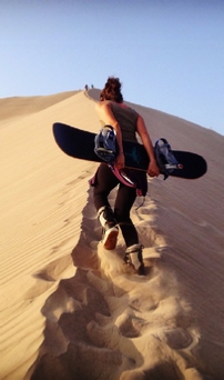 Merzouga Sand boarding is wonderful way to discover the sand dunes of Merzouga. Our Merzouga activities includes also quad drive and Sand bath