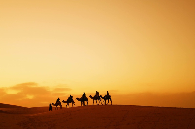 Camel trekking in dunes