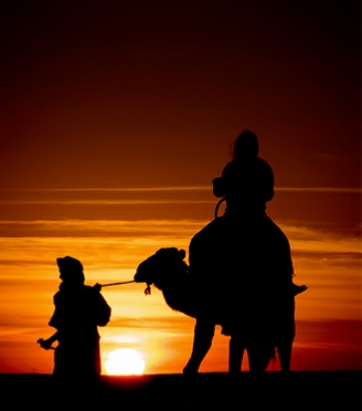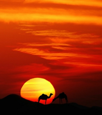 The Sunset tour begins around 5:30pm. It takes almost half an hour to reach the sand dunes of Erg Chebbi riding on top a camel. Then, we will leave the camels, travel by foot about 80 meters to reach the highest dune of Merzouga. For those who want to see a panoramic view they must climb to the top, it will take them another 10 minutes. After having enjoyed this short time we travel back to the village before dark.